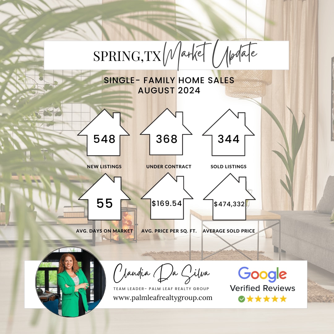 Spring offers a more affordable price per square foot compared to The Woodlands, but don’t let the lower average sale price of $474,332 fool you. When budgeting for a home in Spring, you’ll also want to consider property taxes and insurance. If you’re eyeing an older home in Spring, it’s worth noting that insurance premiums can be higher, depending on the age of the roof, plumbing, and electrical systems. These factors could increase the monthly cost of ownership beyond what the mortgage payment would suggest.